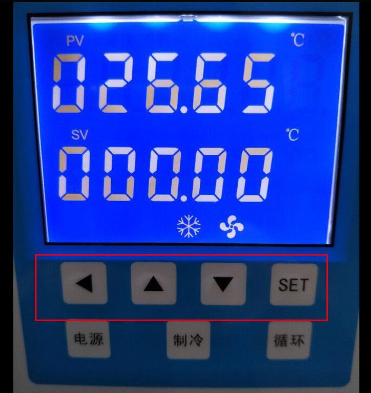 如工作溫度高于環(huán)境溫度,按設(shè)定功能鍵進(jìn)入溫度設(shè)定值設(shè)定狀態(tài)。設(shè)定值末位閃爍,此時先按移位鍵后按加數(shù),設(shè)定您所需的工作溫度,再按設(shè)定功能鍵并保存設(shè)定值,此時測量顯示的是當(dāng)前槽內(nèi)液體介質(zhì)的溫度,此后微機(jī)進(jìn)入自動控制狀態(tài)。